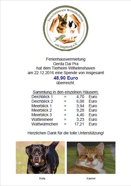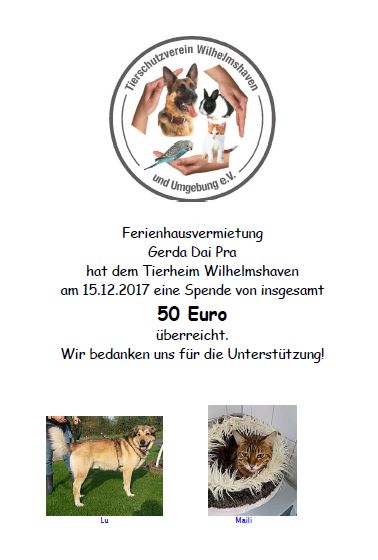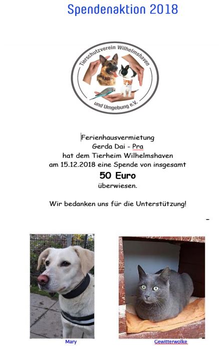 In diesem Jahr, möchten wir neben dem Tierschutz Wilhelmshaven e.V.