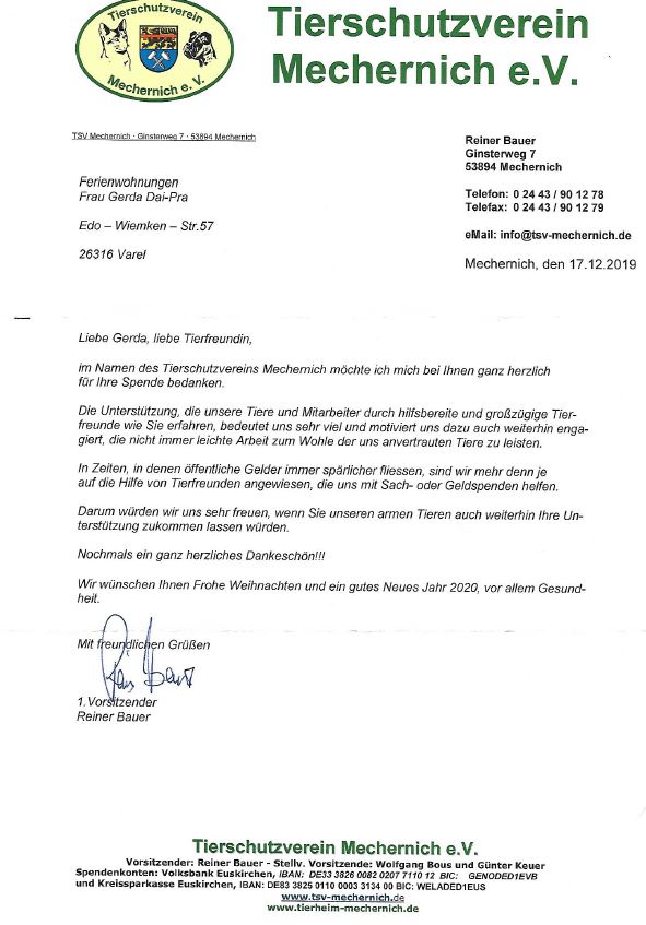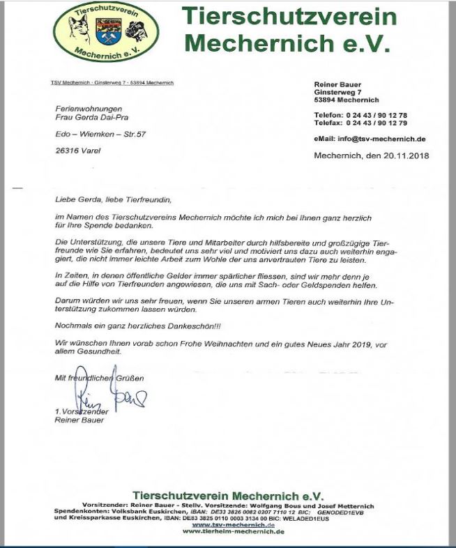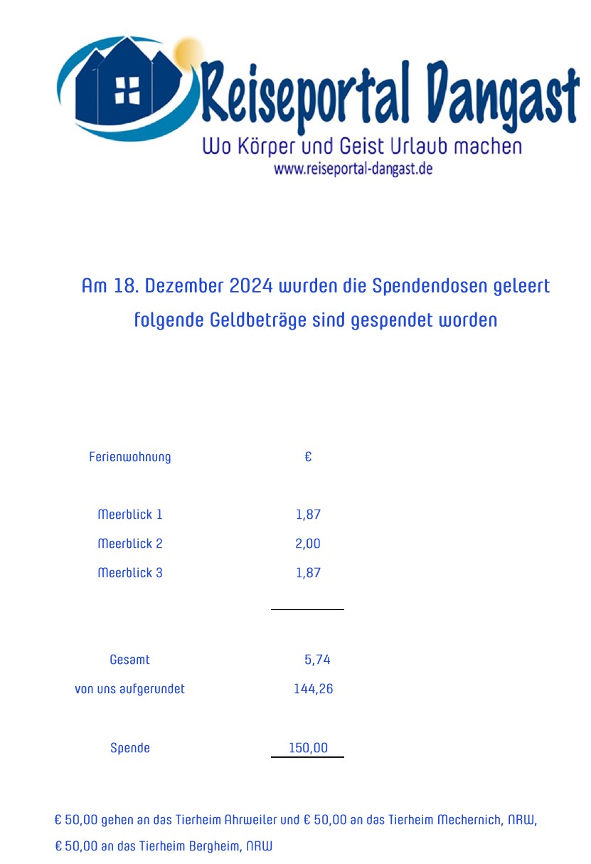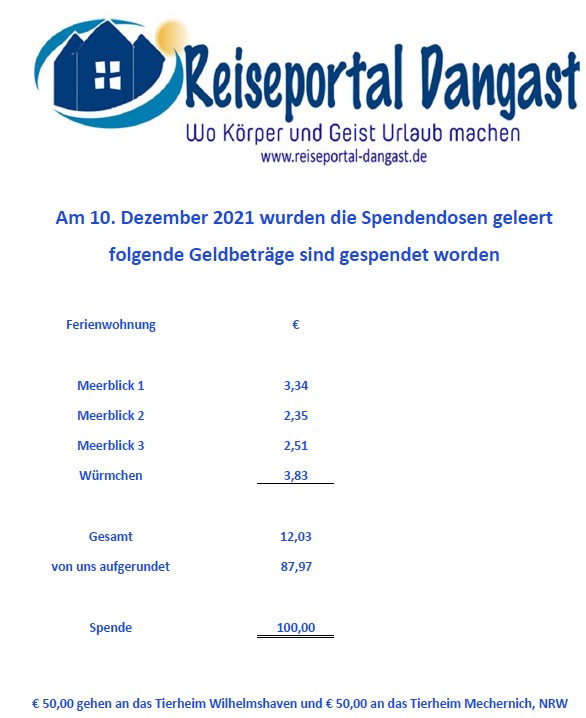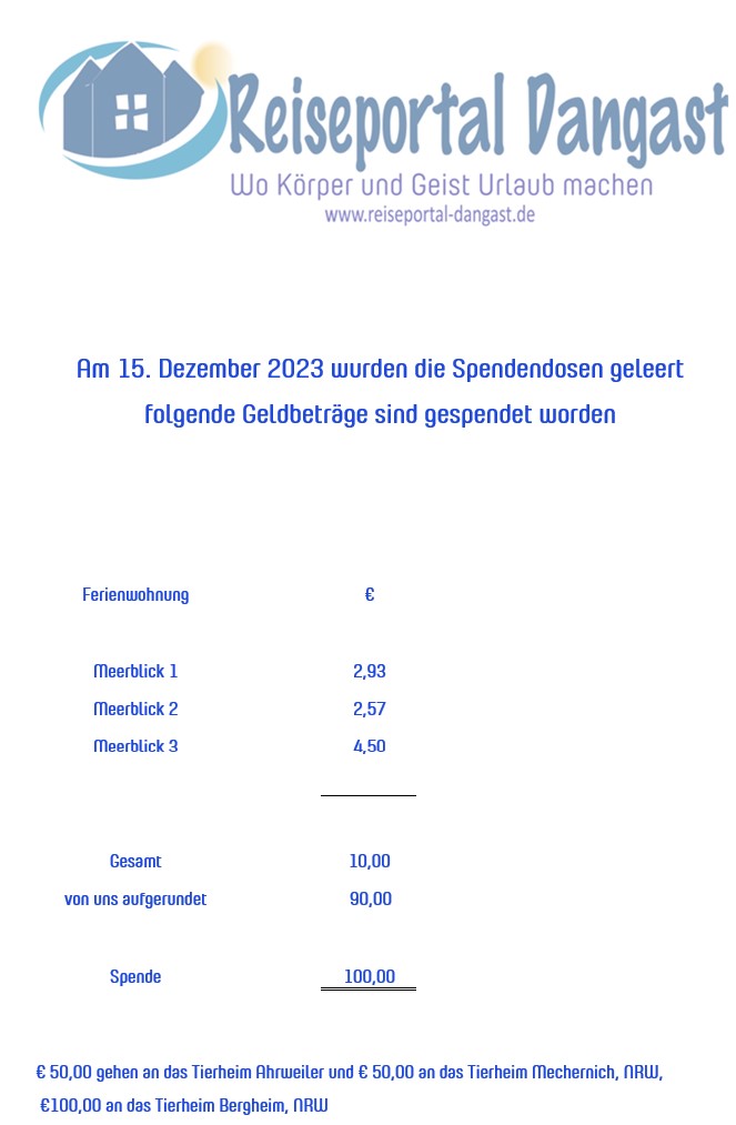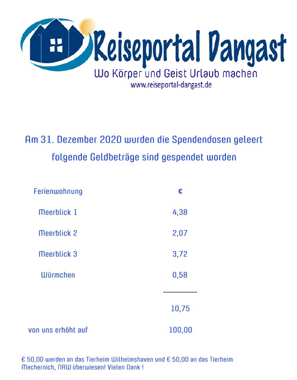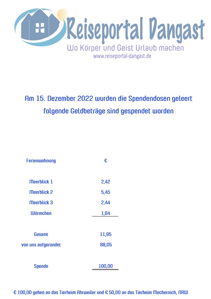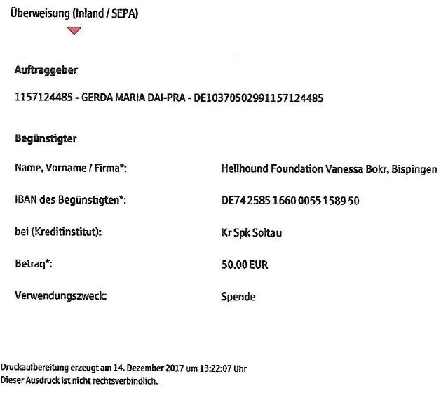 möchte ich mich ganz herzlich für die gespendete Summe in Höhe von 48,90 € bedanken.